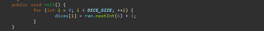 다이스에 가장 큰 숫자가 6인것과 5개의 주사위를 굴리는것은 변하지 않기때문에 final로 선언하였다.