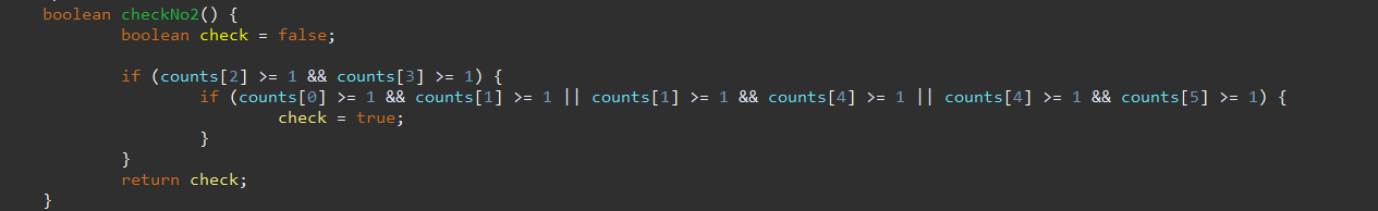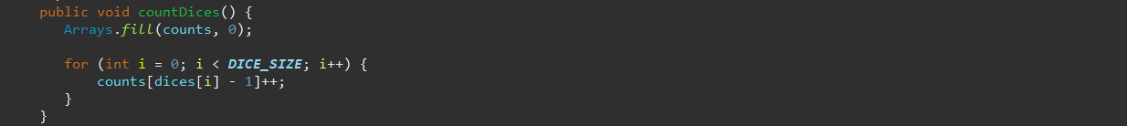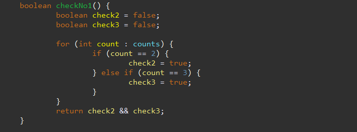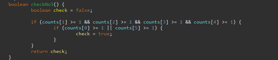 2와 3이 들어있다면 풀 하우스가 되는것이다. (이 부분을 이해하기 위해서는 countDices() 부분을 이해하고 와야한다