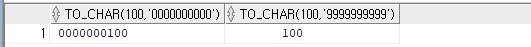 SELECT to_char(100, '9999999999') FROM dual; (9999안에 , 도 찍을 수 있음)