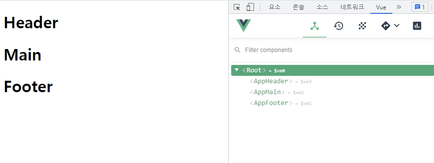 new Vue 인스턴스를 2개 정의하면 <Root>컴포넌트는 2개가 생긴다.