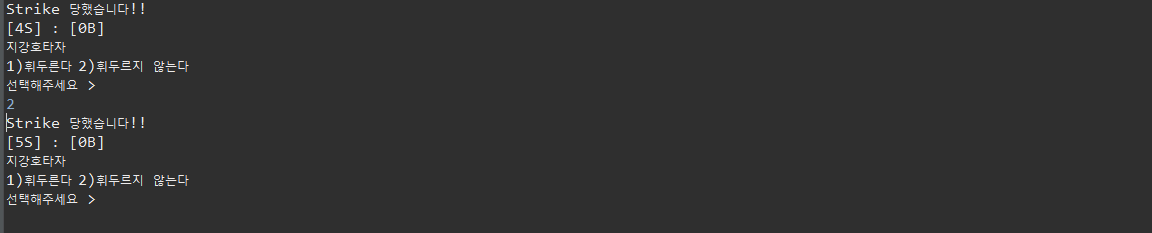 3스트라이크가 되었는데도 아웃이 되지않는 큰 오류가 있따...