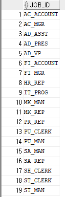 SELECT * FROM jobs; -- 직급에 대한 정보를 저장한 테이블