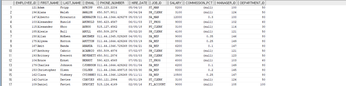 SELECT * FROM employees ORDER BY employee_id ASC;