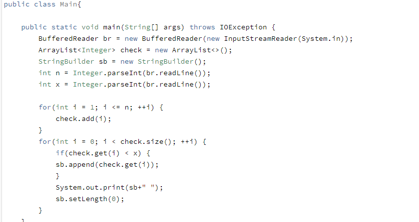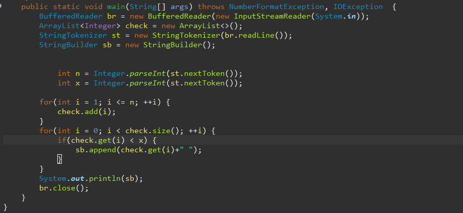 위에 내가 작성한 코드에는 br.readLine으로 변수 n, x에 두번이나 입력받았다