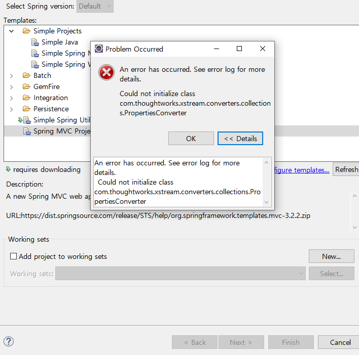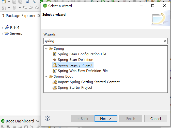 아마 Legacy Project를 누르고 들어가 Spring MVC Project를 생성할때에