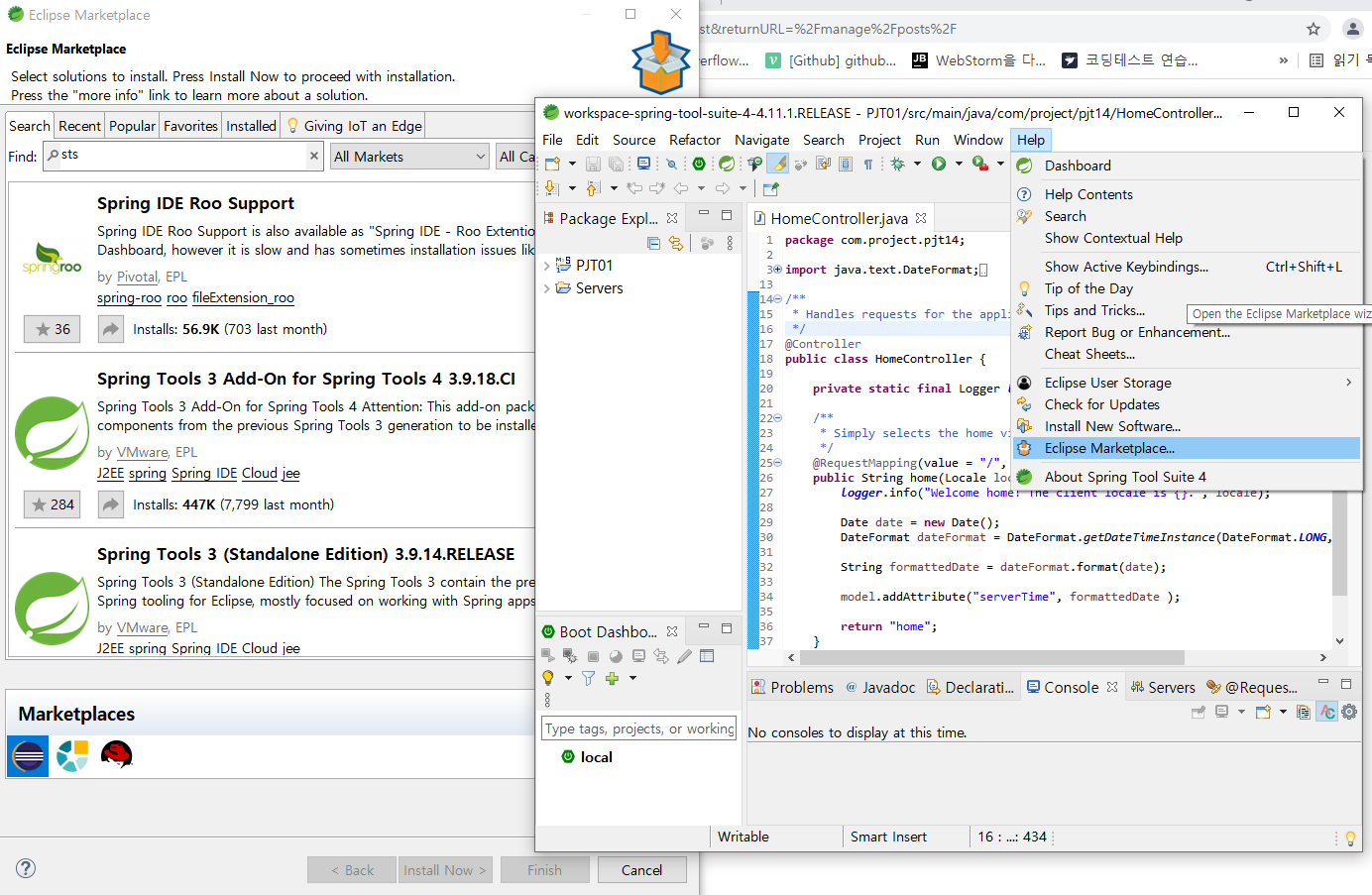 STS를 받은 이클립스 마켓플레이스로 이동하여