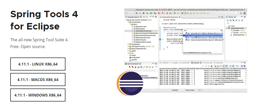 Largely rebuilt from scratch, Spring Tools 4 provides world-class support for developing Spring-based enterprise applications, whether you prefer Eclipse, Visual Studio Code, or Theia IDE.