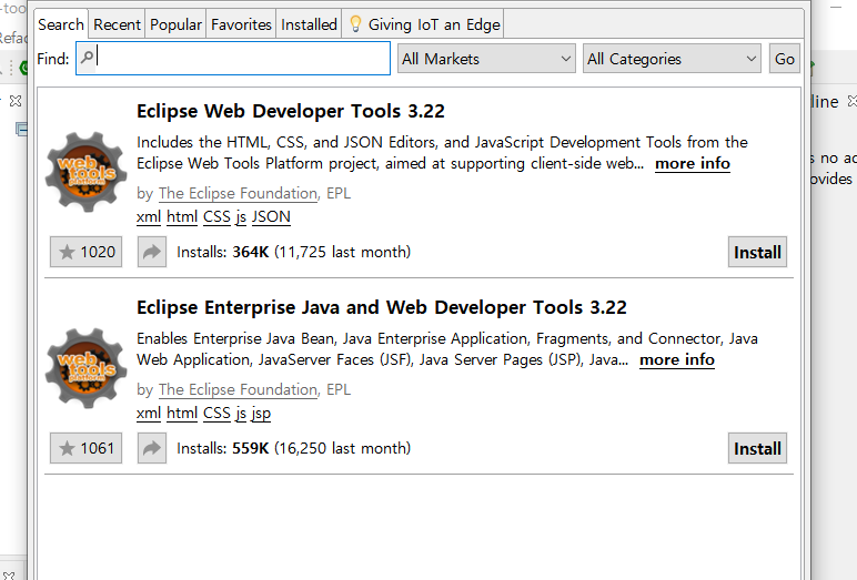 Eclipse Enterprise Java and Web Developer Tools 3.22 를 받아주자